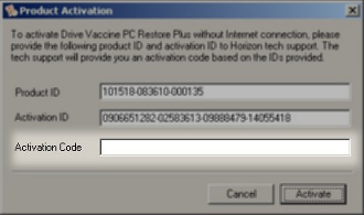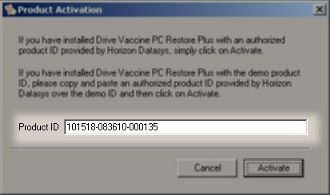 To start using Drive Vaccine PC Restore Plus you need to activate it. This serves to protect everyone from software piracy and copyright abuse.