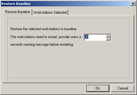 This command will restore the target computers to their Baselines. This requires a reboot. You can give the user an advance warning that the reboot is coming. The default warning period is 30 seconds.