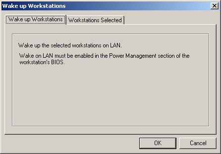 This command attempts to wake up the target workstations. Please note that the target machines must be set up to "Wake-On-LAN" for this command to do anything.