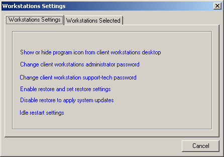 In here you can make changes to how Drive Vaccine PC Restore Plus operates on the target computers. Each of the blue lines of text can be clicked on to show a dialog box containing the setting described in the text. The settings are identical to the ones located in the program itself. For details you can see the relevant pages in the Drive Vaccine PC Restore Plus manual.