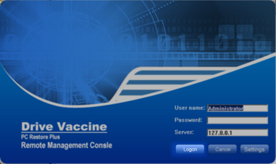 To run the Remote Management Console you need to find it in your Start menu. After you click on the RMC icon, you will be greeted by a blue login screen.